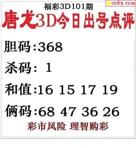 唐龙点评2026101期3d图谜