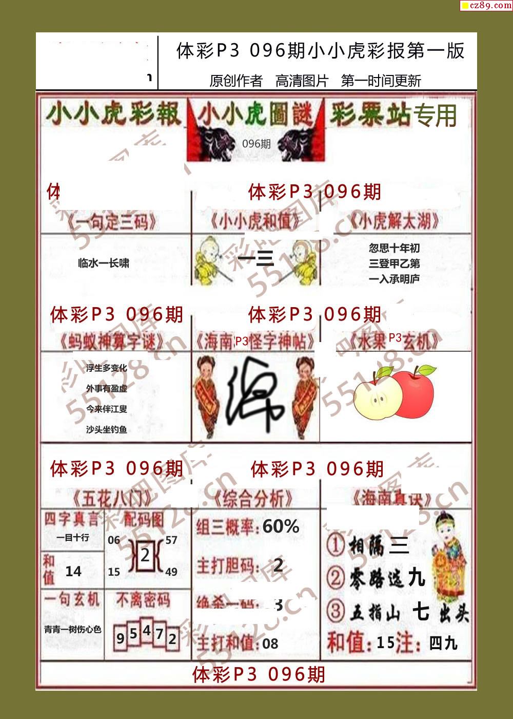 小小虎彩报096期体彩p3图谜