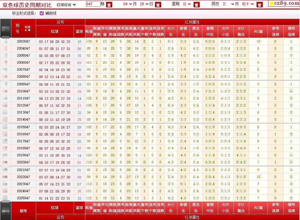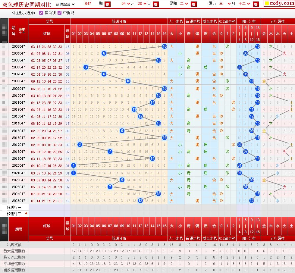 047期双色球历史同期对比图